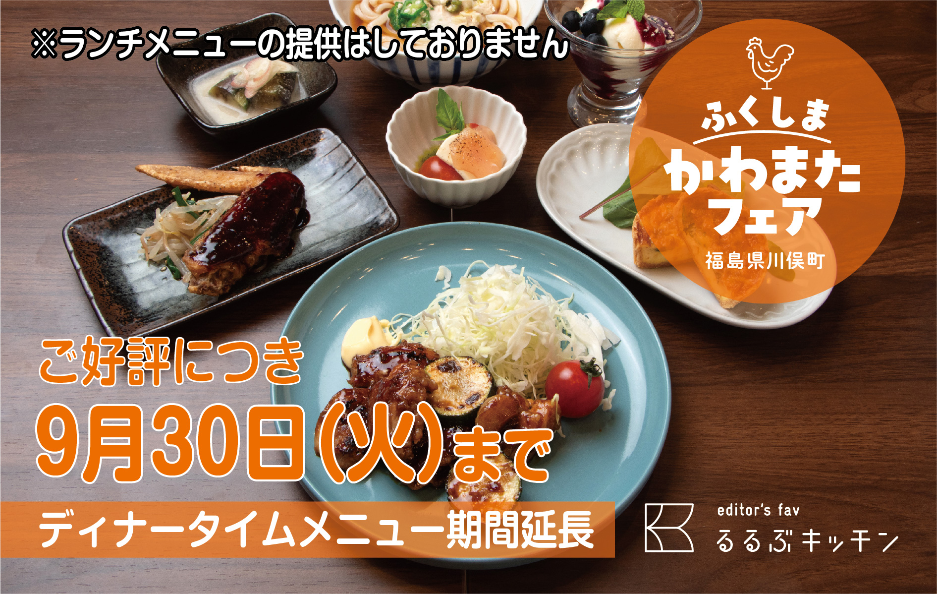 ふくしまかわまたフェアるるぶキッチンにて9月末まで延長! るるぶキッチンにて開催していた「ふくしまかわまたフェア」ですが、好評につき9月30日(火)までディナーメニューの延長が決定いたしました。 2025.09.01